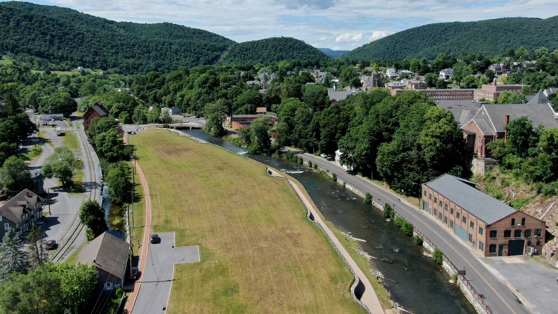 The site of Camp Songer is a large greensward perched above Spring Creek and bounded by a handsome walkway along the water. A century ago, it was occupied by The Bush House, Bellefonte’s biggest hotel, and a complex of factories. In time, it will again be home to large buildings buzzing with commerce. But now, it is a liminal space, awaiting the future but receptive to the past. Camp Songer is even more transitory. It will only last two days and may never be able to return to the place it will occupy during the early days of June 2025.
